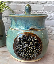 I am a hand-builder at heart! This piece was made using clay slabs . Details were added and it was glazed using Amaco Potter's Choice Glazes and velvet underglazes.